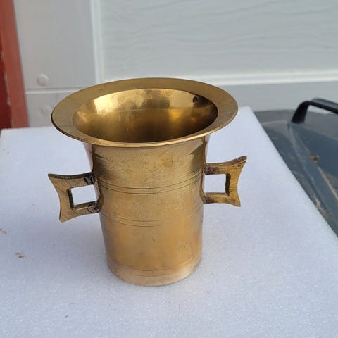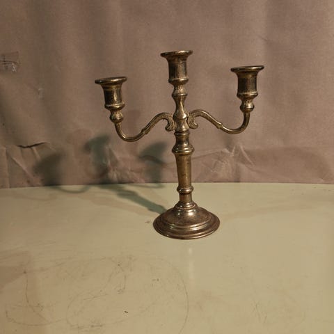 1 stk.5 armed lysestake laget i Italia ,1 stk. stor morter 1 stk. tang glotang ???,1 stk . Lysslukker. + 1 stk kanne ,selges sammlet .