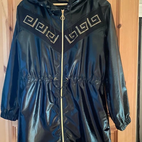 TATU vakker Lang jakke laget av øko skinn, pent dekorert str 42/44 , ny