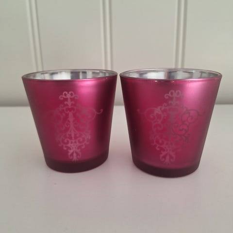 Tre stk. telysholdere. Diameter 5,5 cm. Høyde: 6,5 cm.