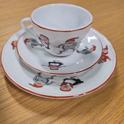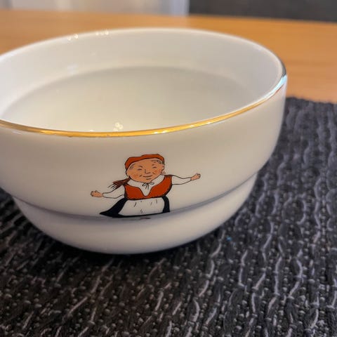 Selger to serverings skåler i nisse serviset til Porsgrund.