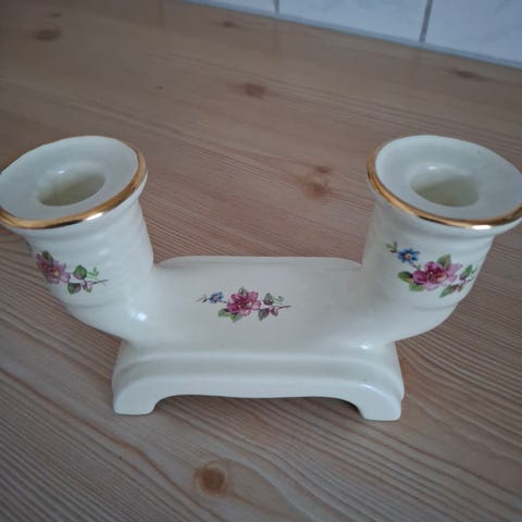 Finn gammel, lysestake i porselen .Hvite med blomster dekor , høyde 17,5 cm.