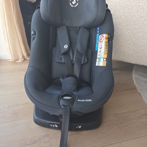 Maxi cosi mica. Brukt til et barn. Ikke brukt med nyfødtinnlegg. Stått i bestemor sin bil.