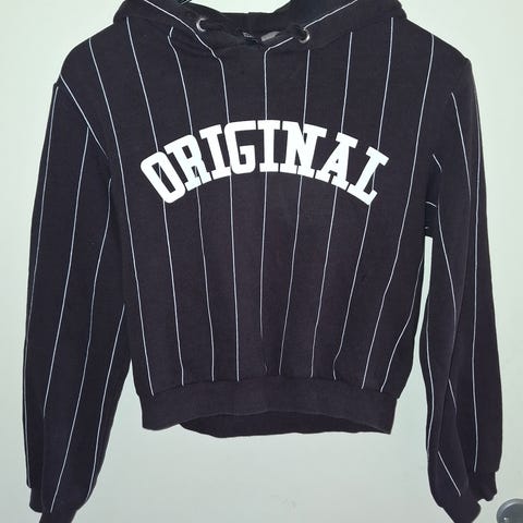 Selger en lite brukt sort hettegenser fra SOAKED in LUXURY i str XS. Modell Alexa Hoodie LS. Den er myk inni, og har metall-detaljer i rødt og sølv ytterst. Det er ribbekant på ermer og nederst. Se bilder for nærmere detaljer.