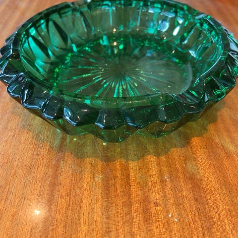 Stor nydelig gammel lysegrønn bolle i pressglass, selges