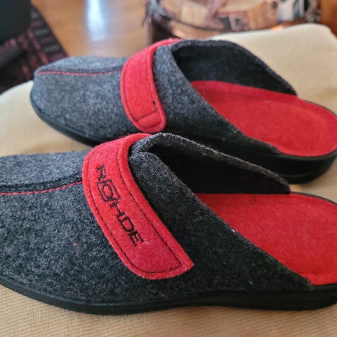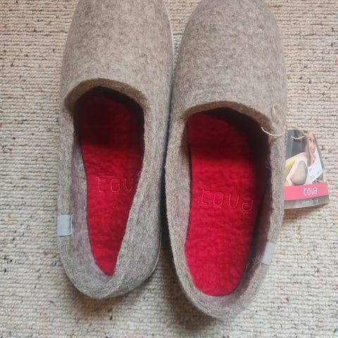 Flotte og lite brukte ulltøfler med såle som tåler vann. Tøffelen er tovet av 100 % merinoull og har gode varmende og pustende egenskaper. og kan enkelt rengjøres med en fuktig klut.