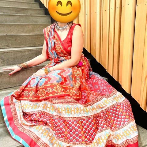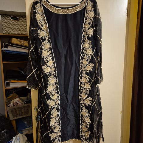 Utrolig fin kjole, bra kvalitet og mye broderi. Følger med bukse, skjerf og underskjørt.