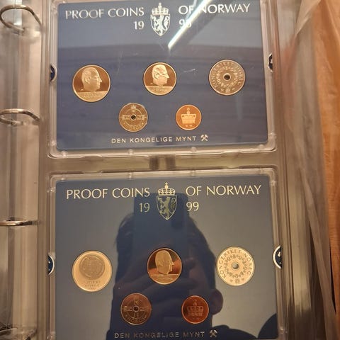 Proffsett, norske mynter 1998 og 1999, kr. 375 pr. sett eller samlet for 600kr.