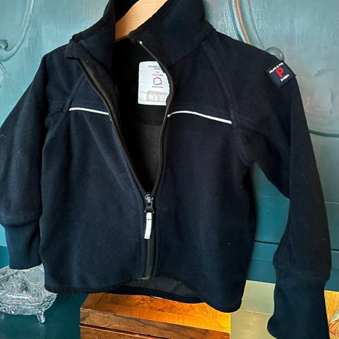 * Pent brukt vindstopperjakke, i mørk blå fleece, fra Polarn & Pyret, str 2-3 år, normale bruksmerker, kr 100
