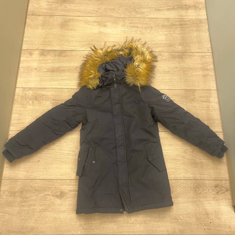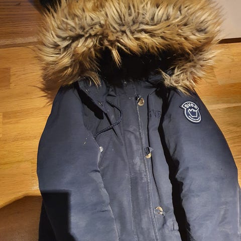 Kjempefin, og varm. Liten flekk, se bilde, og noe nupper på hals/ermer, ellers veldig pen.
