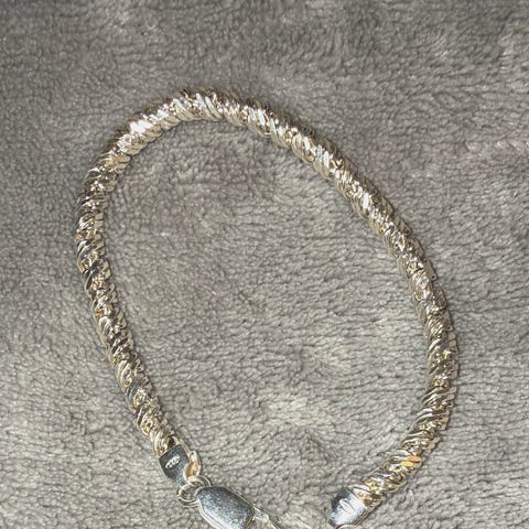 Meget pent sett i 830 sølv. Kjedet er 42 vm langt og noe bredere foran enn på sidene. Totalt 54 gram. God lås i sølv både på armbånd og kjedet.