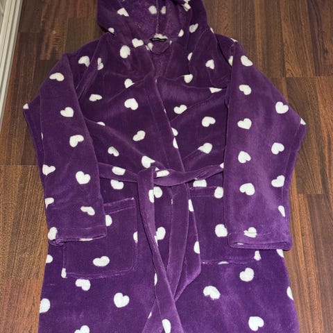 Veldig myk og behagelig morgenkåpe, pent brukt, ingen bruksmerker. Størrelse 7-14 år. Avtagbart belte.