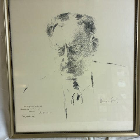 Original radering med portrett av skipsreder, oppdager, hvalfangstmagnat Lars Christensen fra Sandefjord. Leder av firmaet Thor Dahl. Signert av kunstneren Henrik Lund. Lund laget i 1933 et oljeportrett av Christensen, og raderingen kan være fra samme år.