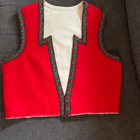 Størrelsen er ca. str. M, og kan sys inn til ca. str. S.