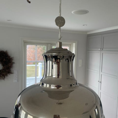 Rund taklampe i metall selges, har hengt opp et halvt års tid, den framstår som ny.