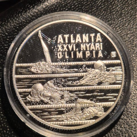 Romania - 100-Lei Sølv-minnemynt - XXVI-Atlanta-OL Padling - 1996.