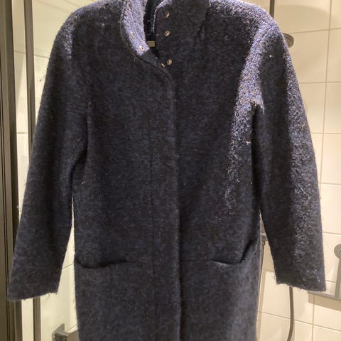Knallfin ull jakke/kåpe fra Jazz, str 36. Litt liten på str. Fargen er en nydelig gråblå farge. Den inneholder 70% ull. Veldig lite brukt så er som ny.