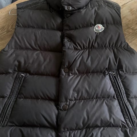 Selger min klassiske dunvest fra Moncler. Str 2, som tilsvarer S eller liten M. Knapt brukt, selges i perfekt stand. Farge sort, blank. Modell Ghany Gilet, en klassisk modell som går igjen hver sesong. Glidelås i lukning og i sidelommer. Ekte dunfyll.