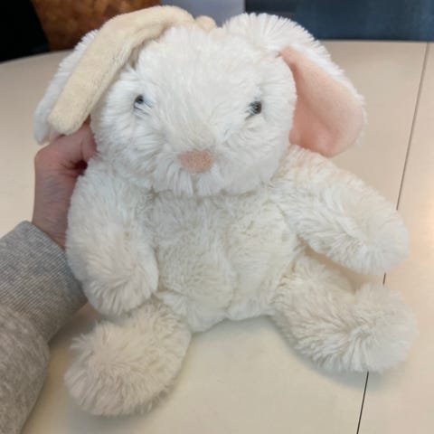 Den mørke kaninen er ca 38 cm. Veldig pene i stoffet. Gode og myke kosebamser