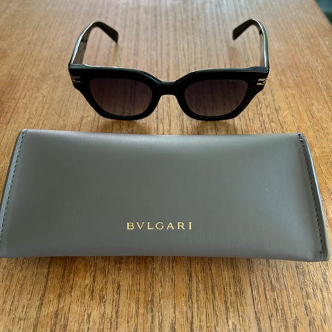 Vil selge flere av solbriller mine. Jeg er veldig glad i solbriller og har derfor mange solbriller som har ligget helt ubrukt, og nå har jeg bestemt meg for å selge mange av dem. Dette er BVLGARI solbriller.