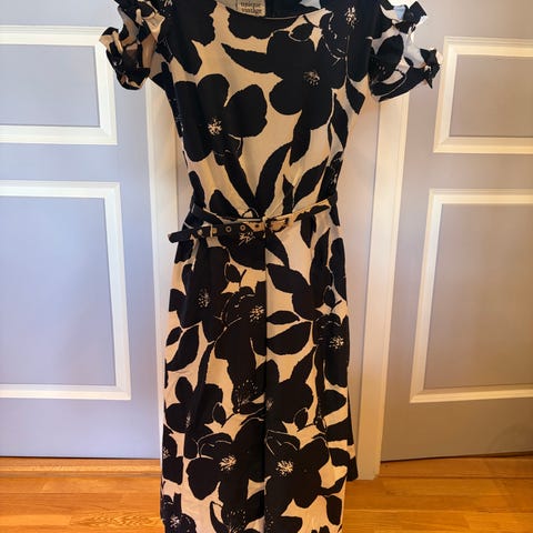 Ny knelang kjole i krinklet, vevd bomullskvalitet str. XL selges. Rund hals og elastisk åpent parti i ryggen med smale, horisontale knytebånd. Korte sommerfuglermer, vaffelsøm i midjen og lett utsvingt skjørt. Uføret. Aldri prøvd/ brukt.