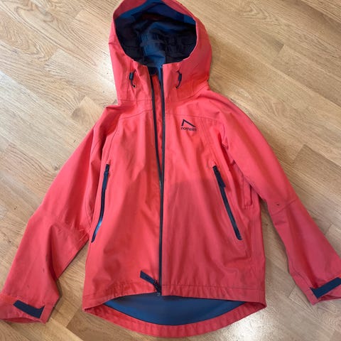 Vanntett og pustende, 10 000 mm vannsøyle, tapede sømmer og ventilasjon under armer.