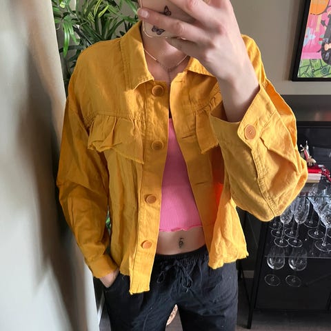 Fin lang oransje jakke. Størrelse er XS, men passer også til S.