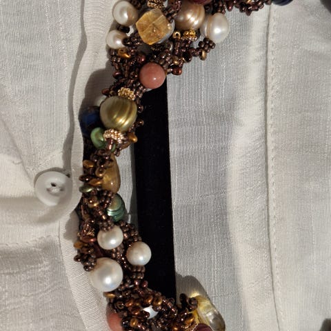 Solid Ferskvannsperle halskjede med Hvit Månestein