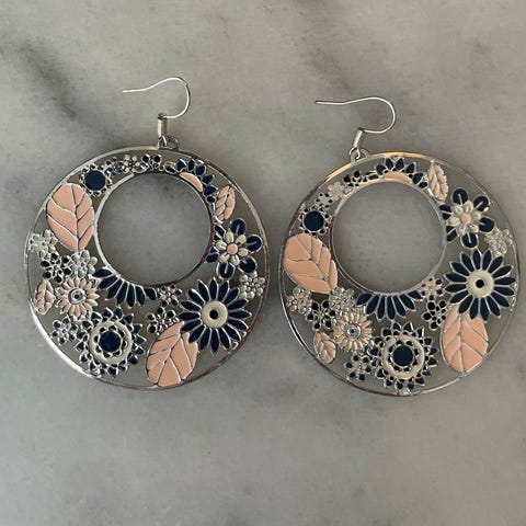Søte blomst øredobber. Kan sees noen bruksmerker, mulig begge to blitte litt ødelagt, men det synes ikke mye og passer fint til vintage/bohem stilen. Eller veldig fine!