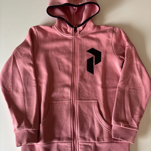 Deilig rosa hettegenser i str 150/12 år fra Peak Performance. Selges kr 349,- Hentes på Gullhella eller sendes mot porto