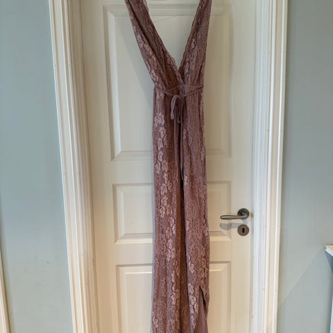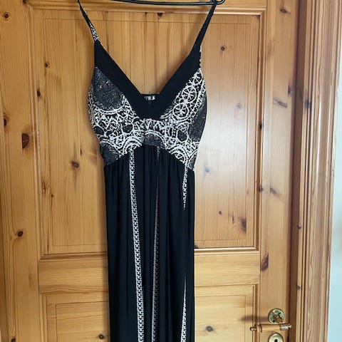 Lang superfin kjole selges. Den er litt tynn i stoffet, litt sånn badedrakt lignende. Den er veldig fin på og passer alt fra S-L. Lommer på begge sider
