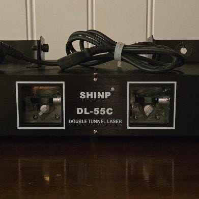 3 disco-ljuseffekter i en! 200mW dubbel laser + 9000mW LED RGB disco-effekt med strobb i samma enhet. 50mW grön laser + 150mW röd laser + full RGB (alla färger) LED scanner med motordriven spegel (höghastighets, högprecisions microstep motor). Musikstyrning med inbyggd mikrofon och reglage för känslighet. Autofunktion med inbyggda program. Extra stark LED 9W = 100W glödljus. Digital display och 4 knappar för val och inställningar bland många olika program. Lås med nyckel för laser ger maximal säkerhet. Byggd i stål 230x190x86mm, 3kg. Ställbar vinkel på fästbygeln. 25W fläktkyld. Kan användas utan rökmaskin, ger ännu mer med rök. Se videon, visar ett av programmen! En mycket populär effekt.