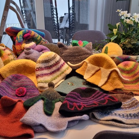 Jeg strikker ulltepper til mottak for hjemløse katter til omplassering. Miabua i Sandefjord. Alle kattene får hvert sitt teppe.