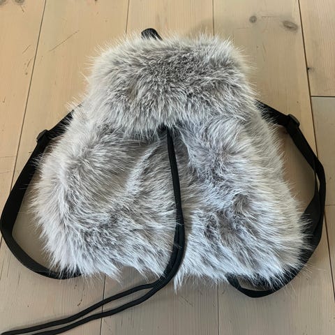 Selger en pent brukt, kjempesøt liten ryggsekk/backpack i sort fuskepels fra Forever 21.