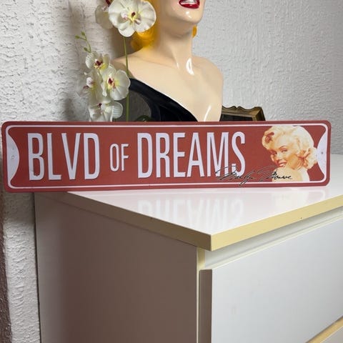 Metallskilt 20x30 cm Marilyn Monroe kr 150,- 2 stk kr. 250,-