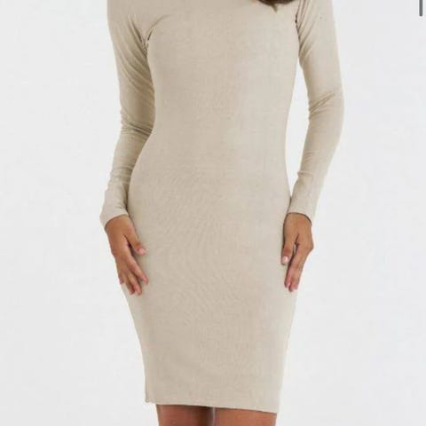 One shoulder dress. Helt ny og ubrukt kjole fra Nelly. Lapper henger fortsatt på. Str. S. Laget av 95% viskose og 5% elastan. Khakifarge.