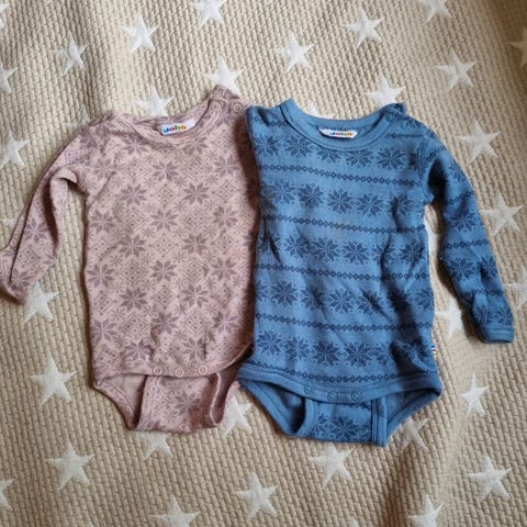 Kortermet ullbody fra Joha som trenger en reparasjon da det er blitt et hull på fremsiden. Størrelse 68/74. Fin å ha under gensere 😊