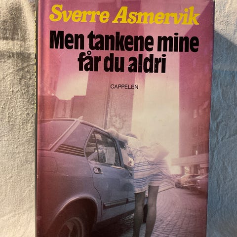 Eg sel eit eit svært pent brukt eksemplar av romanen "Men tankene mine får du aldri. En roman om prostitusjon i Oslo " Boka er gitt ut av Cappelen/BnB i 1982.
