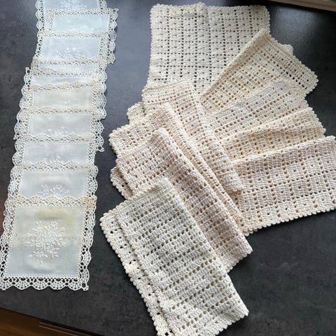 Diverse løpere -duker selges. Noen hjemme heklet. Totalt 9 stykker