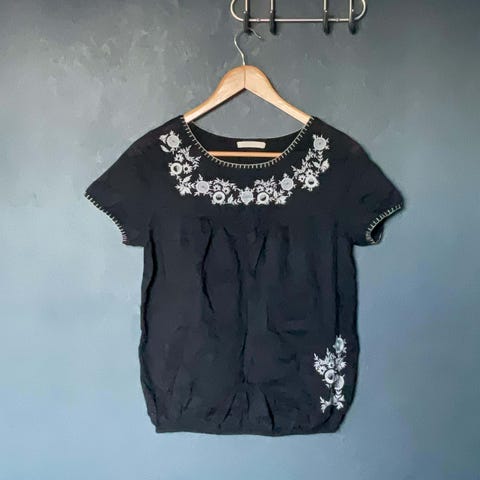 Superfin vintage buksedress med brune knapper og knyting. Den er relativt vid over hofte og lår. Kjøpt i en vintage butikk for mange år siden, og brukt kun et par ganger. Den kostet 750 kr ny den gangen.