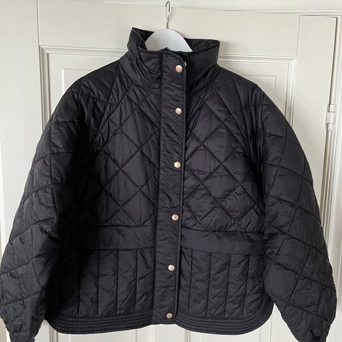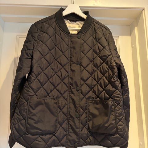 Kjempefin jakke fra H&M, svart, str. M. Jakken er oversized, vil heller si det er en str.L. Helt ny, ubrukt, lappen henger fortsatt på. Ny pris 599kr, selges for 200kr