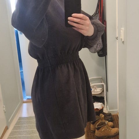 Rydder i skap og selger derfor fin kjole fra Ella & il i str S. Dette er en kjole som ikke er brukt. Kjolen er flosset innvendig, har hette og lomme foran. Behagelig å ha på, ordentlig "kosekjole". Se bilder. Kan sende mot at kjøper betaler porto.
