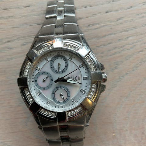 Ny, ubrukt Mango dameklokke stål med armbånd kvarts med urkøptbevis . Kjøpt og aldri brukt.