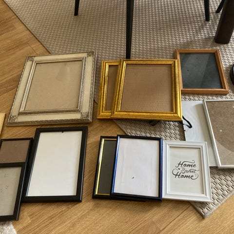 Tavle m/3 bilderammer. Høyde 58 cm. Bredde 48 cm. Må hentes.
