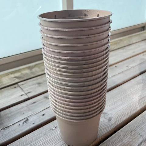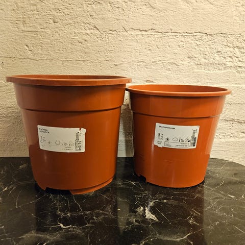 Store potter har 1 stk med jul de er ca 34 lange og 40 på åpningen, selges stykkvis, eller alt samlet, men de koster 200kr pr stk