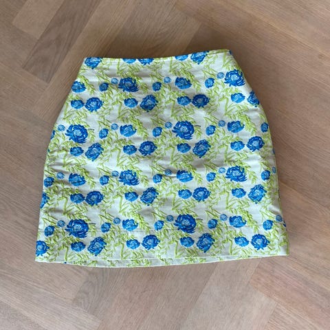 Strl L, men er mer som en M. Skjørtet har to rifter og må sys.