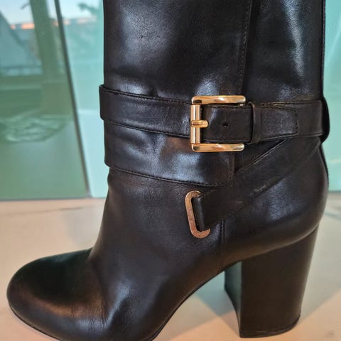 Selger et par nye mørkebrune støvler / støvletter fra Michael Kors i str 38. Modellen heter Ryan Boots og måler ca 42 cm fra såle og til kanten av leggen. Lagd i skinn. Disse er ubrukte i esken, men har fått bittelitt skrape på den ene støvlettene, se siste bilde. Har ikke sett noen andre anmerkninger ved gjennomgang. Røyk- og dyrefritt hjem. Kan sendes med Postnord for 69kr eller med fiks ferdig. Kan også hentes i Solbergelva. Se gjerne mine andre annonser.