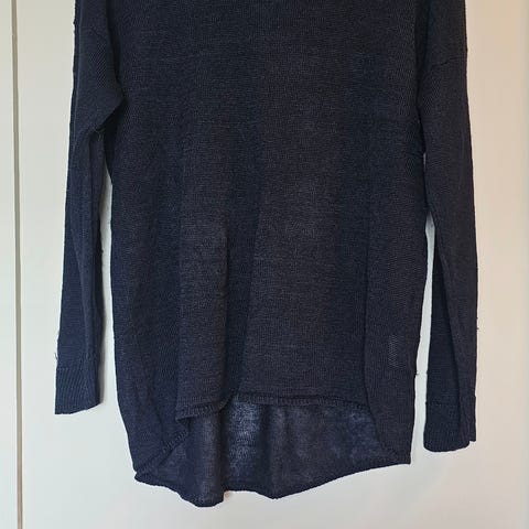 Pent brukt strikket silkegenser fra Silkwear, Danmark. 75 % silke, 25 % ull. Fin struktur i materiale. Lett innsvingt. God, myk og varm. Mål over brystet 49 cm, lengde er 56 cm. Sender gjerne.