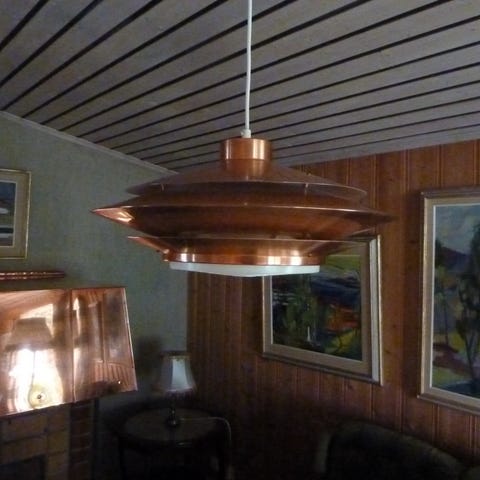 Taklampe i kobber og krystall