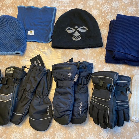 Vintertilbehør fra Reima, Polarn O. Pyret, Kuling og Hummel. 80kr per stk. Se bilder for str.