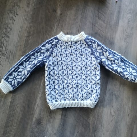 Selger en pent brukt hjemmestrikket genser. Usikker på garntypen. Størrelse: ca 2 år, se bilder med målestokk.